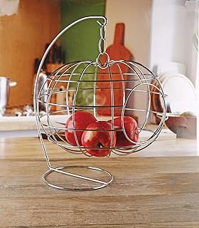 Circleware ケージ リンゴ型 吊り下げ フルーツバスケット ホルダー 家庭 キッチン用品 カウンタートップ オーガナイザー ディスプレイ 野菜 スナック用 13インチ x 13インチ x 16.1インチ シルバー