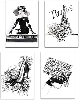 Lodintech 白黒キャンバス ウォールアート ファッション レディース ガールズ 寝室 壁装飾 パリ エッフェル塔 フレームなし アートプリント ハイヒール ローズ モダン ポスター ハンドバッグ 写真 リビングルーム バスルーム 装飾 8x12 (グレー)