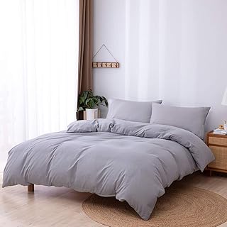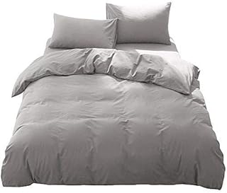 [Amazonブランド] Umi(ウミ) - 布団カバー 3点セット シングル シーツ 寝具カバーセット 掛け布団カバー ボックスシーツ 枕カバー ベッド用 布団用 洗い替え 保温 速乾タイプ 洋式・和式兼用 ピーチスキン加工 防ダニ(グレー, シングル・3点セット)