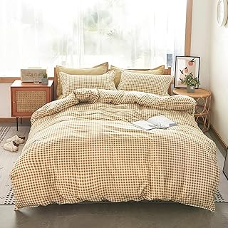 Cozyone 布団カバー 3点セット シングル シーツ シアサッカー生地 洋式・和式兼用 寝具カバーセット 掛け布団カバー ボックスシーツ 枕カバー ベッド用 布団用 優しい肌触り柔らかい 洗い替え 速乾タイプ ピーチスキン加工 四季通用 (サンシャインイエロー, シングル・3点セット)